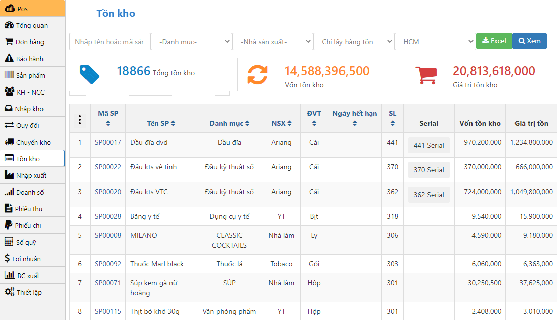 – Trực tiếp quan sát được số lượng tồn kho theo từng sản phẩm