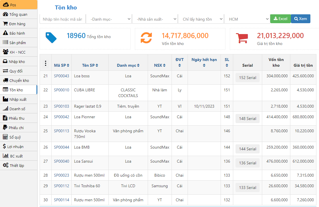 – Trực tiếp quan sát được số lượng tồn kho theo từng sản phẩm
